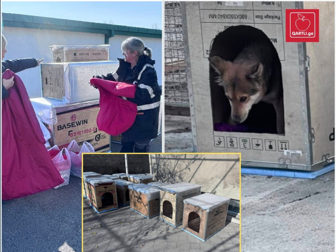 EUMM-ის წარმომადგენლებმა მიუსაფარი ცხოველებისთვის ბუნაგები საკუთარი ხელით დაამზადეს და სააგენტოს გადასცეს