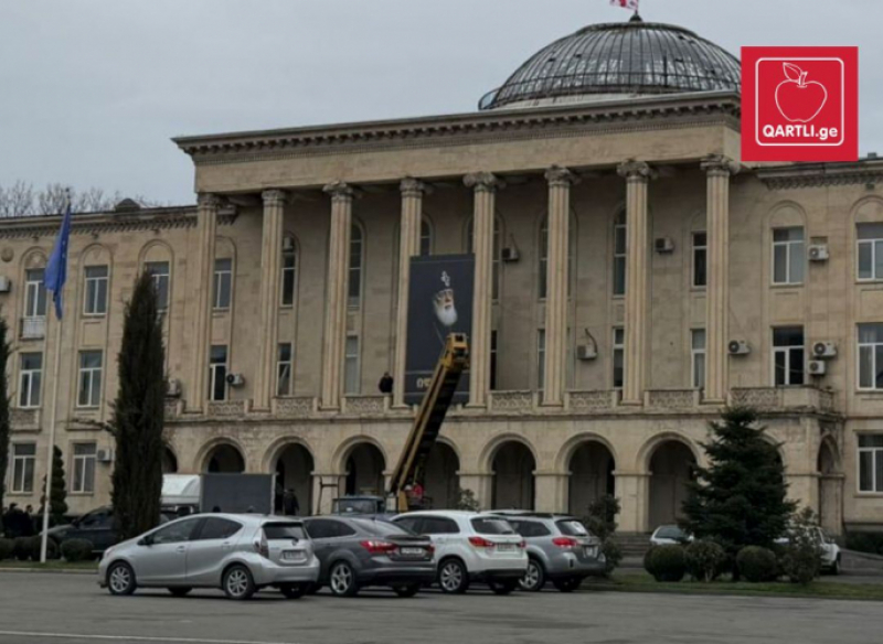 გორის საკრებულოს შენობაზე საქართველოს კათოლიკოს-პატრიარქის, ილია II-ის ბანერი განთავსდა