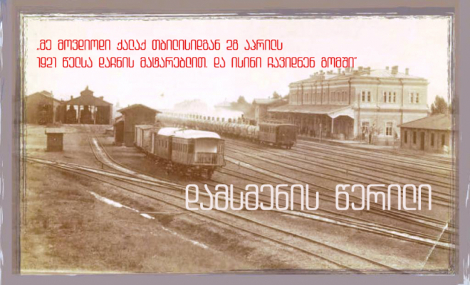 ,,მე მოვდიოდი ქალაქ თბილისიდგან 28 აპრილს 1921 წელსა დაჩნის მატარებლით. შევხვდი მატარებელში შემდეგს: